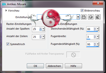 Mosaik und stelle es wie im Screen ein