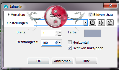 Jalousie mit dieser Einstellung, die