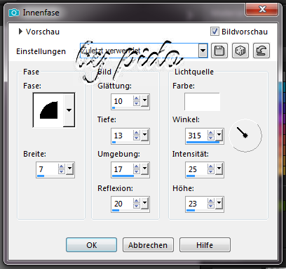 gehe auf Effekt, 3D Effekt-Innenfase mit