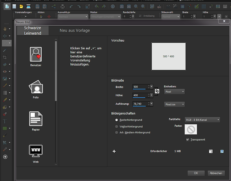 ein neues Bild von 500 x 400 px