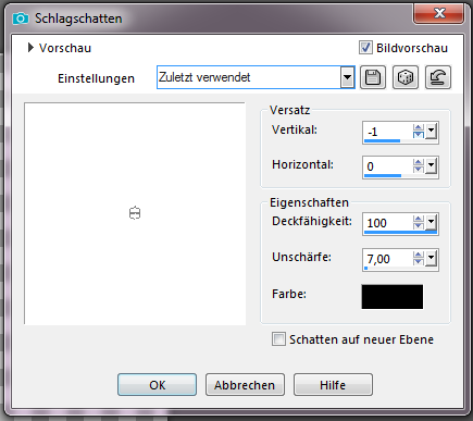Schlagschatten wie zuvor